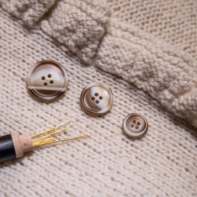 Hvad er casein knapper? Læs om det naturlige mælkeproteinmateriale, der bruges til eksklusive, holdbare knapper til cardigan og strik.